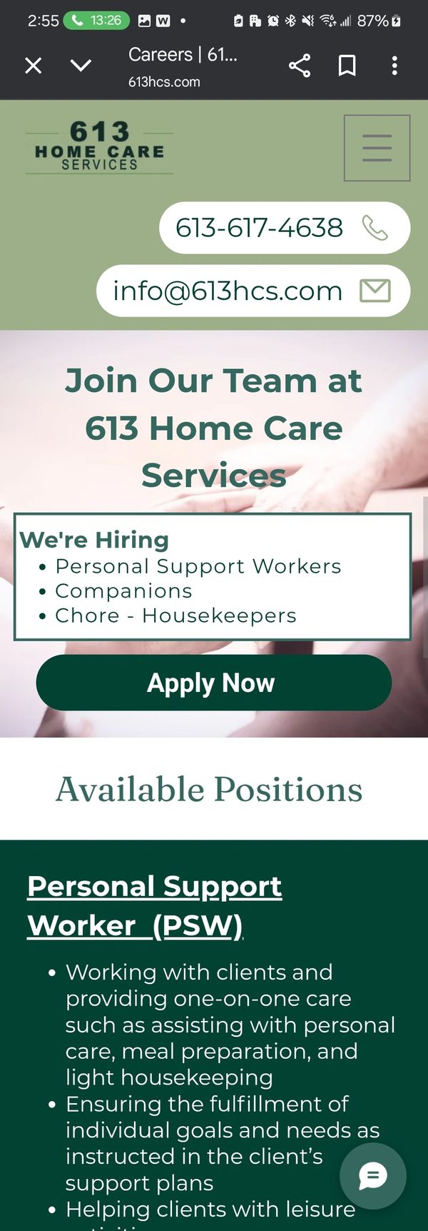 If you're looking for the best home care services in Ottawa, contact www.613hcs.com